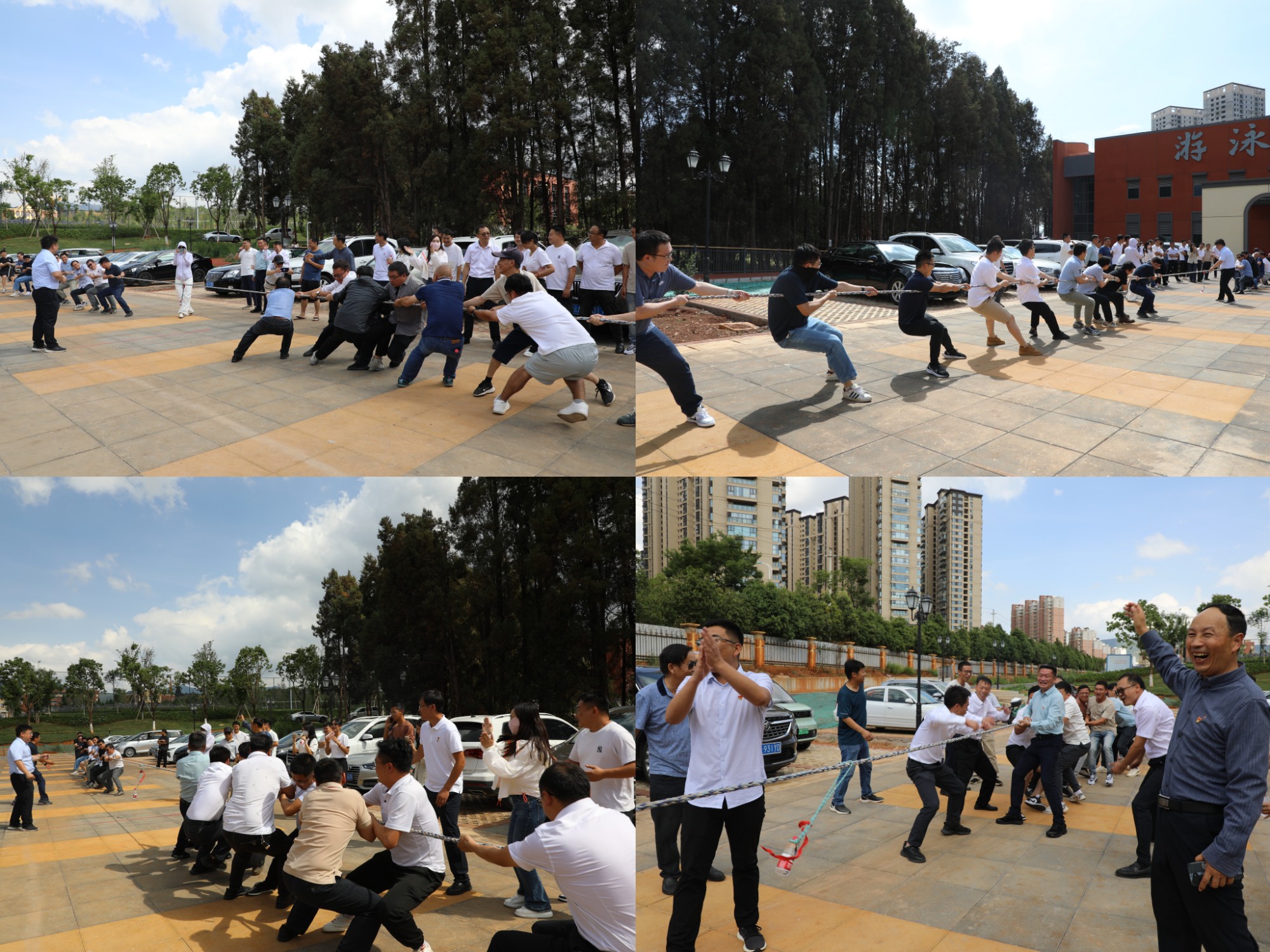 參觀結(jié)束后,活動(dòng)來(lái)到了最激動(dòng)人心的環(huán)節(jié)——趣味運(yùn)動(dòng)會(huì)。趣味運(yùn)動(dòng)會(huì)環(huán)節(jié)由游泳比賽和拔河比賽組成。在游泳比賽中,隨著一聲哨響,參賽選手們便如離弦之箭一般躍入泳池,開(kāi)始了激烈的比拼,他們?cè)诜v的水花中你追我趕、奮勇?tīng)?zhēng)先,展現(xiàn)出了拼搏奮進(jìn)的精神風(fēng)貌。緊張的比賽氛圍也感染著場(chǎng)邊的觀眾,鼓掌聲、喝彩聲此起彼伏。