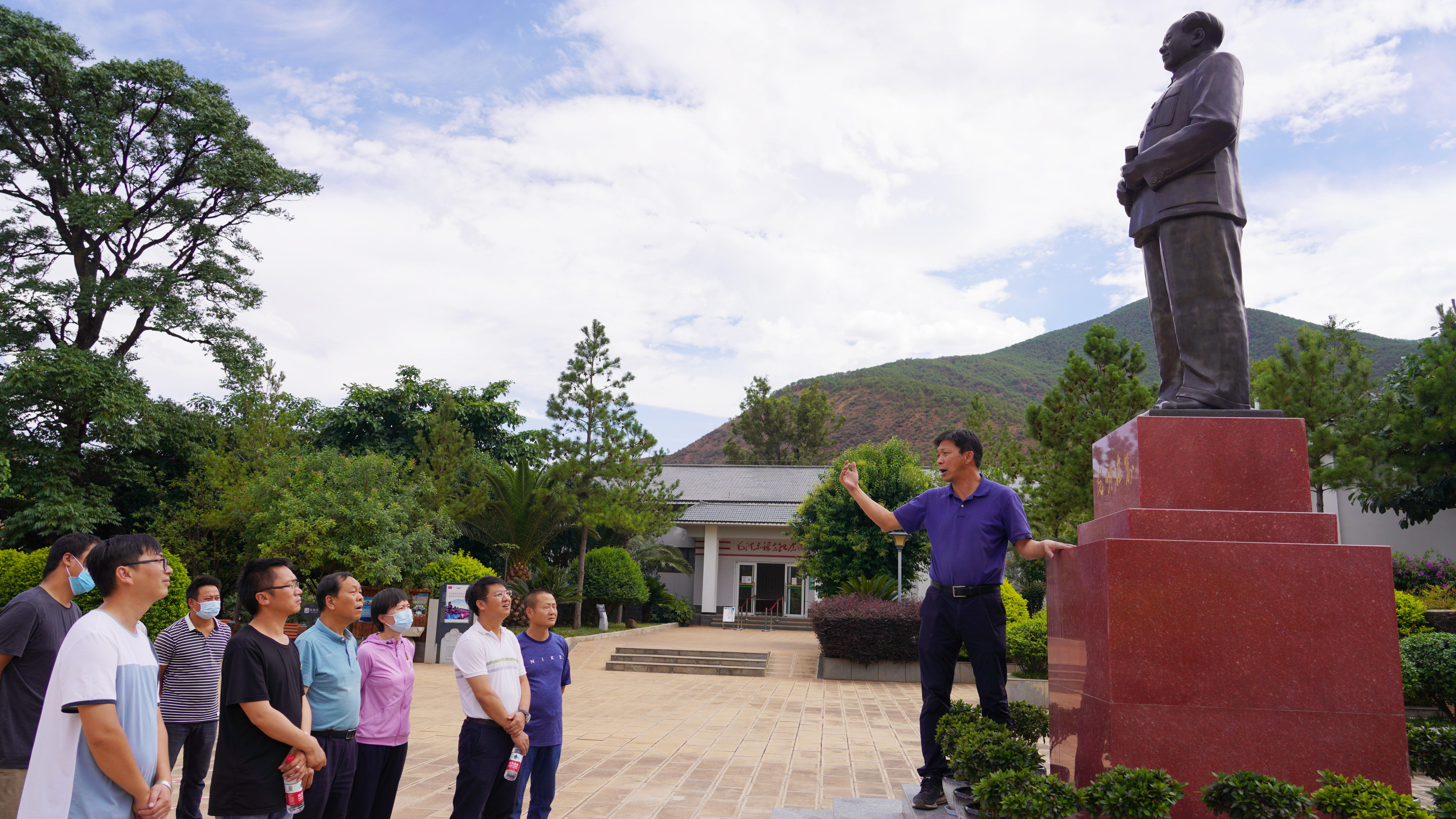 5月26日,公司黨委書記、副董事長萬向遵,黨委委員、工會主席胡云紅,生產(chǎn)管理部負(fù)責(zé)人,工會辦公室相關(guān)人員,第十五直管部、綠化分公司程海項目黨員職工一行到麗江市永勝縣程海鎮(zhèn)鳳羽村委會毛家灣的毛氏宗祠開展黨史學(xué)習(xí)教育活動。
