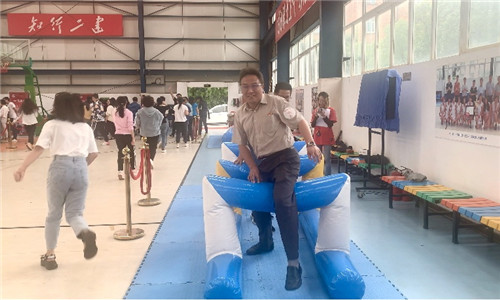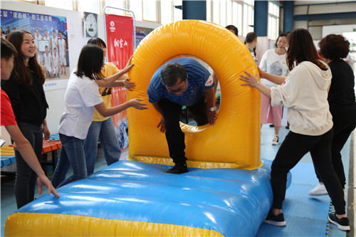 ▲游戲“飛奪瀘定橋”(集體通過獨木橋和障礙物)
