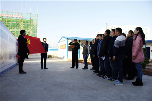 活動中,宜良縣住建局基建管理所到項目現(xiàn)場進行實地查看,并結(jié)合監(jiān)管職能,就項目實體質(zhì)量、安全工作進行技術(shù)指導。兩個支部的黨員代表還結(jié)合此次活動進行交流,并為在12月過政治生日的黨員頒發(fā)“政治生日卡”?;顒幼詈?,全體黨員面對黨旗,重溫了入黨誓詞。