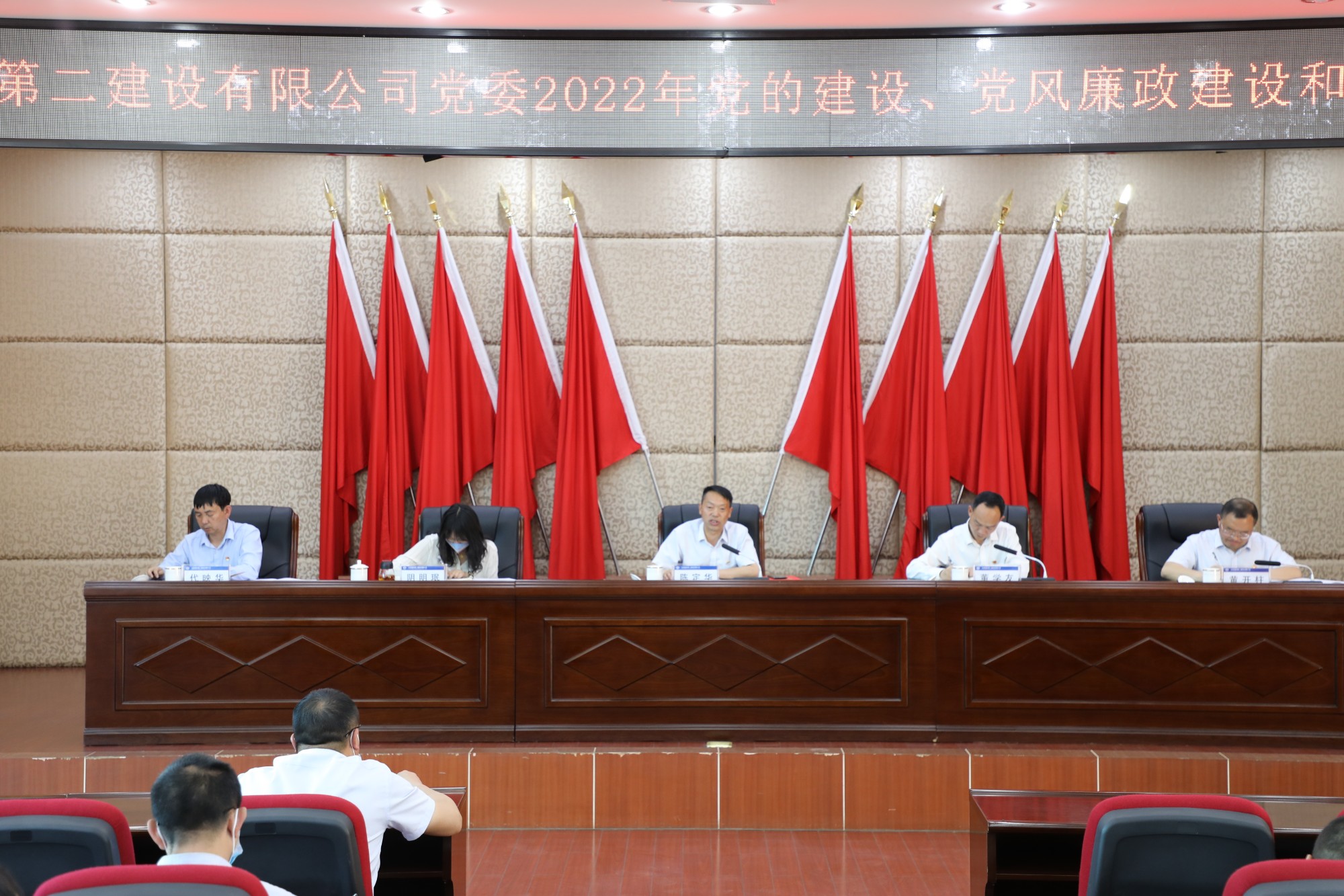 公司黨委副書記、董事長陳定華代表公司黨委作了2021年度黨的建設(shè)、黨風(fēng)廉政建設(shè)和反腐敗工作總結(jié)及2022年度重點工作報告,全面總結(jié)回顧了2021年度公司落實全面從嚴(yán)治黨要求取得的各項成績,并對公司2022年度黨的建設(shè)、黨風(fēng)廉政建設(shè)和反腐敗工作作出了全面部署。他強(qiáng)調(diào),一是強(qiáng)化政治引領(lǐng),筑牢思想根基。要持續(xù)深入學(xué)習(xí)貫徹習(xí)近平新時代中國特色社會主義思想,始終堅持把黨的領(lǐng)導(dǎo)融入公司治理全過程,持續(xù)抓牢意識形態(tài)和正面宣傳,做好喜迎黨的二十大和學(xué)習(xí)貫徹大會精神工作。二是強(qiáng)化組織建設(shè),建強(qiáng)戰(zhàn)斗堡壘。堅持以集團(tuán)“1556”黨建思路為引領(lǐng),全面提質(zhì)基層黨建工作。三是強(qiáng)化隊伍建設(shè),鍛造高素質(zhì)干部人才。加強(qiáng)干部監(jiān)督管理使用,建設(shè)敢于擔(dān)當(dāng)、干事創(chuàng)業(yè)的干部人才隊伍。四是強(qiáng)化正風(fēng)肅紀(jì),全面推進(jìn)黨風(fēng)廉政建設(shè)。要持續(xù)壓實“兩個責(zé)任”,深化“清廉建投”建設(shè),強(qiáng)化作風(fēng)建設(shè)。加強(qiáng)監(jiān)督執(zhí)紀(jì)問責(zé)并抓實問題整改。