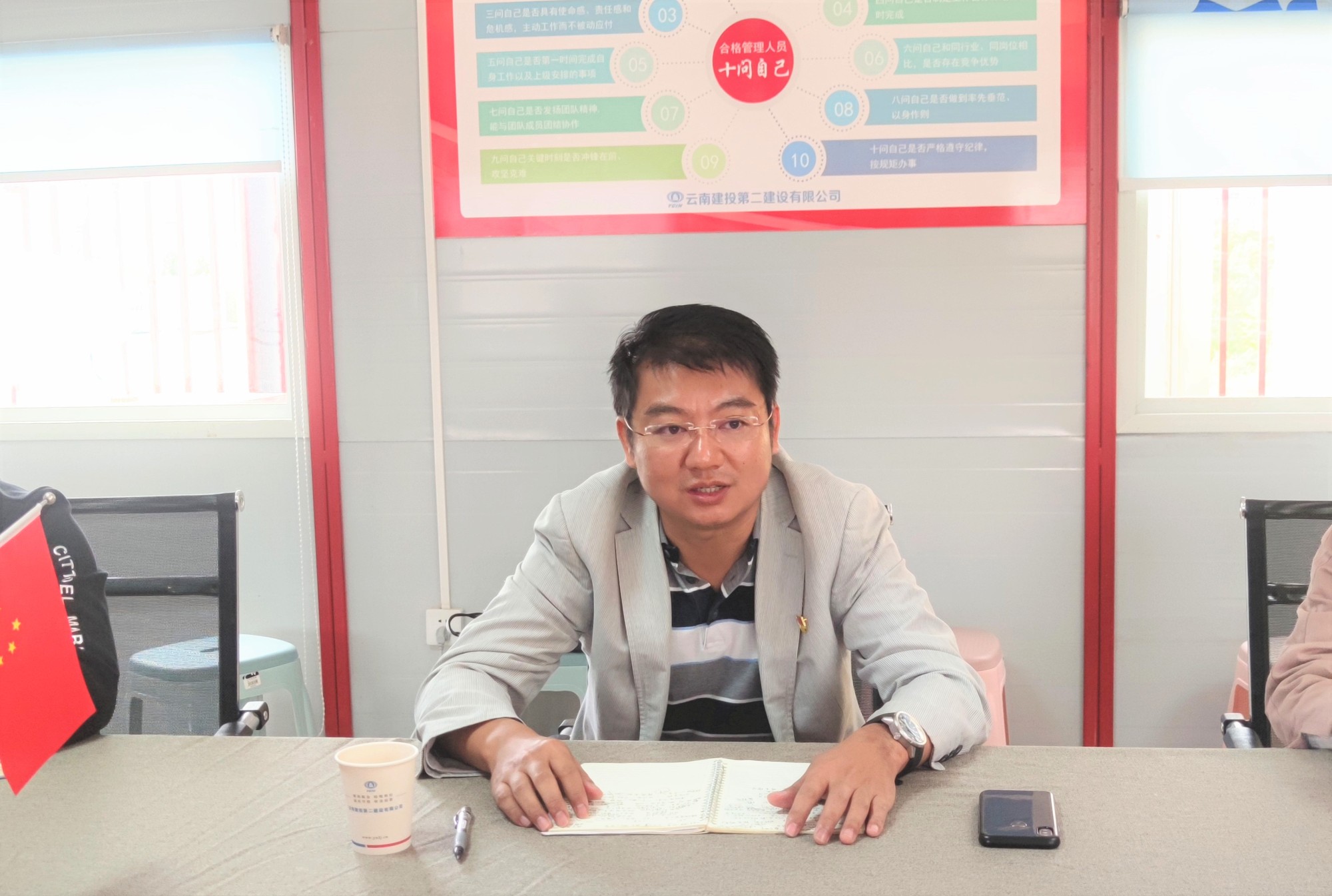 10月20日,公司黨委書記、副董事長萬向遵帶領(lǐng)黨委工作部、生產(chǎn)管理部相關(guān)負責人到第九直管部呈貢康復醫(yī)院項目檢查指導示范黨支部遴選整改情況、“我的職責是什么”及“十問自己”活動開展情況等工作,直管部在昆領(lǐng)導班子、黨員、項目部職工參加會議。