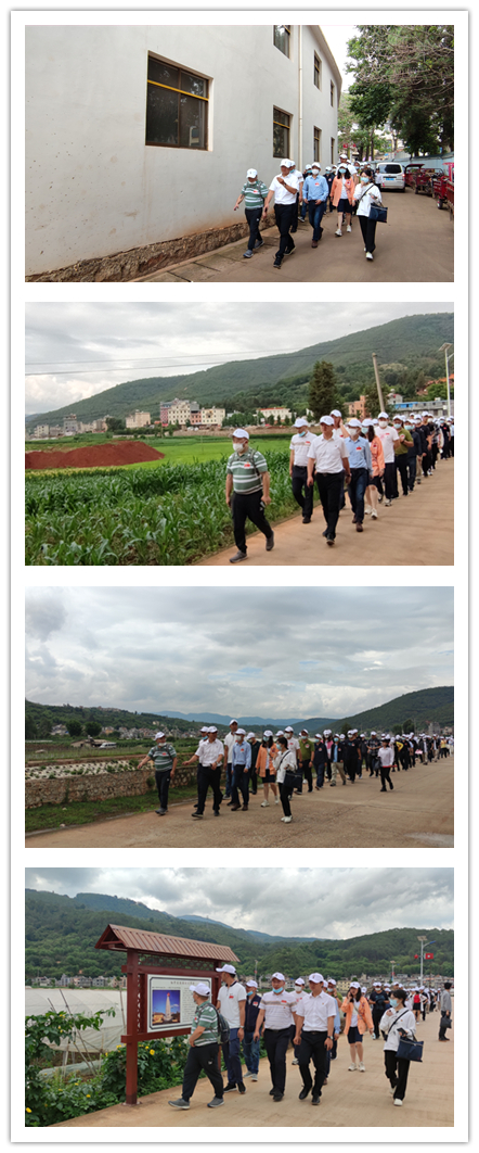 下車后,大家整裝出發(fā),重走長(zhǎng)征路。長(zhǎng)征好似一篇宣言書,它向所有人宣示著紅軍的偉大與英勇,它向中國(guó)人民宣示:紅軍的道路就是解放的道路,能夠通往光明的未來。雖然腳下的路已是干凈平坦的水泥路,但是所有人都知道,過去可不是這樣的路。路,從無到有,從小到大,從艱險(xiǎn)到平坦,它的背后隱藏了多少人的身影,淹沒了多少人的面孔,執(zhí)著前行,哪怕刀山火海,哪怕永無回頭……