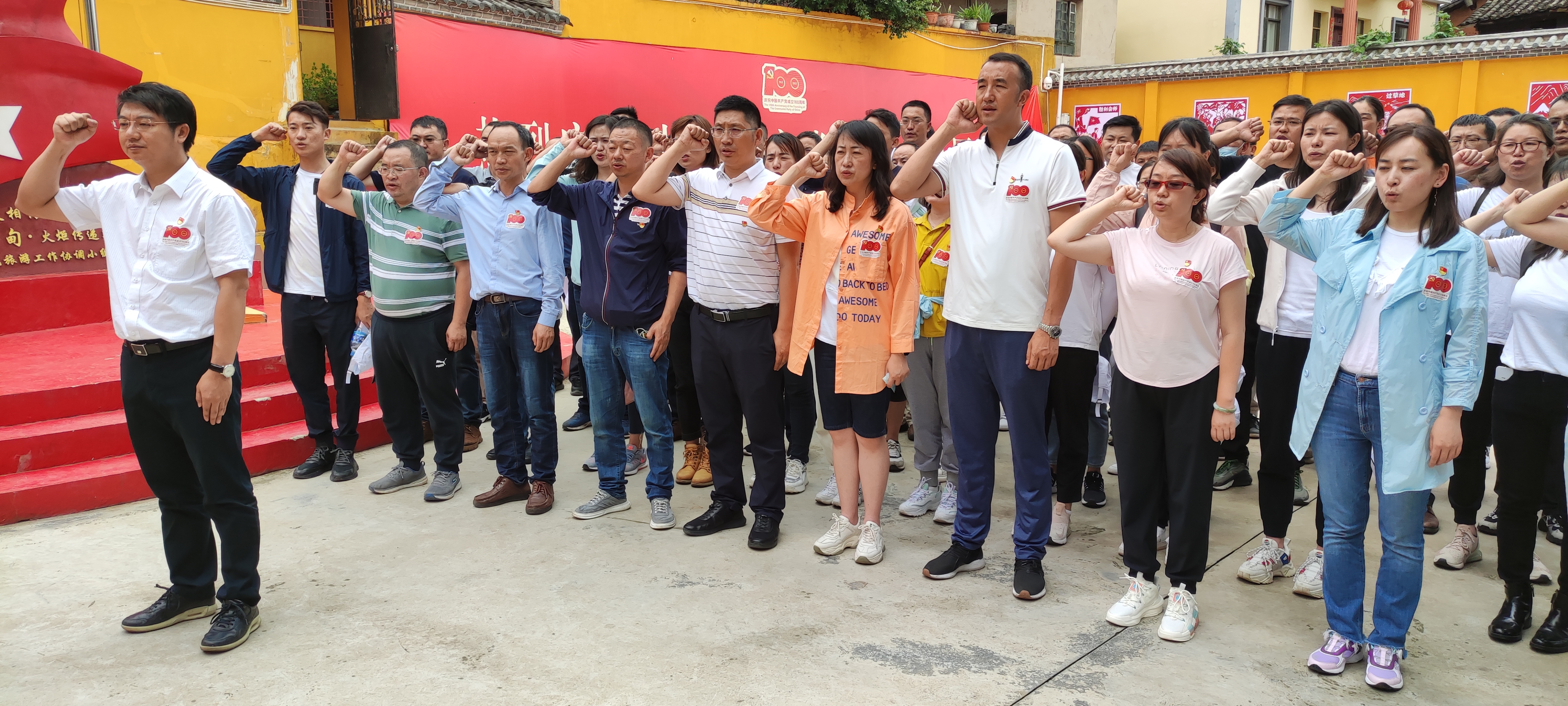 在紀(jì)念館前,面對(duì)莊嚴(yán)的黨旗,全體黨員在萬向遵的帶領(lǐng)下,高舉右手,重溫入黨誓詞。全體黨員面向黨旗,高聲宣誓:“我志愿加入中國(guó)共產(chǎn)黨,擁護(hù)黨的綱領(lǐng),遵守黨的章程,履行黨員義務(wù),執(zhí)行黨的決定,嚴(yán)守黨的紀(jì)律,保守黨的秘密,對(duì)黨忠誠(chéng),積極工作,為共產(chǎn)主義奮斗終身,隨時(shí)準(zhǔn)備為黨和人民犧牲一切,永不叛黨?!睍r(shí)間在變,社會(huì)在變,不變的是中國(guó)共產(chǎn)黨人永恒的初心和使命,公司70余名黨員干部職工鏗鏘的誓詞,神圣而豪邁。