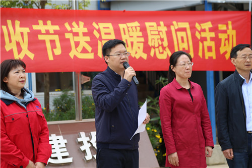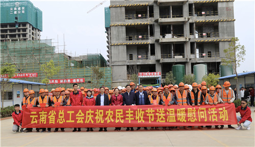 為慶祝第二個“中國農(nóng)民豐收節(jié)”的到來,認(rèn)真貫徹落實(shí)以習(xí)近平同志為核心的黨中央關(guān)于“三農(nóng)”工作的指示精神,關(guān)心關(guān)愛建筑行業(yè)的城市建設(shè)者。9月25日上午,省總工會黨組成員、副主席張弛代表省總工會到公司滇池明珠廣場二期建設(shè)項(xiàng)目開展“慶祝農(nóng)民豐收節(jié)送溫暖慰問活動”。集團(tuán)工會常務(wù)副主席楊金、公司黨委書記邢儒民參加活動。