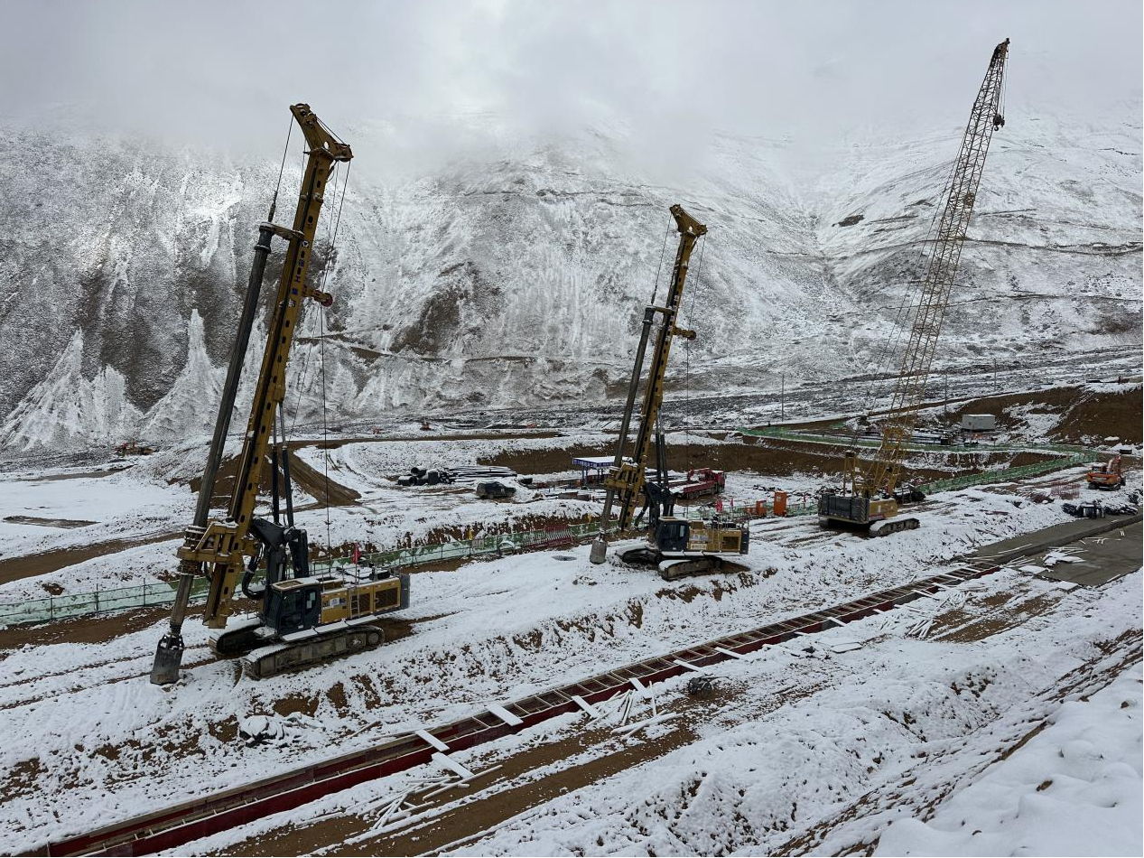 西藏翔龍礦業(yè)選廠項(xiàng)目位于西藏自治區(qū)日喀則市昂仁縣,海拔4700米,高寒缺氧,臨近4月底還有降雪天氣,地質(zhì)條件復(fù)雜,施工難度極大。本次澆筑的首顆樁基為選廠核心區(qū)域的基礎(chǔ)工程,樁徑1米,設(shè)計(jì)深度25米。為確保施工質(zhì)量,項(xiàng)目團(tuán)隊(duì)采用高原專用混凝土配方及旋挖鉆機(jī)成孔工藝,實(shí)時(shí)把控樁基垂直度、混凝土溫度等關(guān)鍵參數(shù),組織成立專項(xiàng)技術(shù)小組,優(yōu)化施工方案,強(qiáng)化人員輪班保障。經(jīng)過連續(xù)4小時(shí)的奮戰(zhàn),首顆樁基澆筑任務(wù)圓滿完成,各項(xiàng)檢測(cè)指標(biāo)均符合設(shè)計(jì)要求。