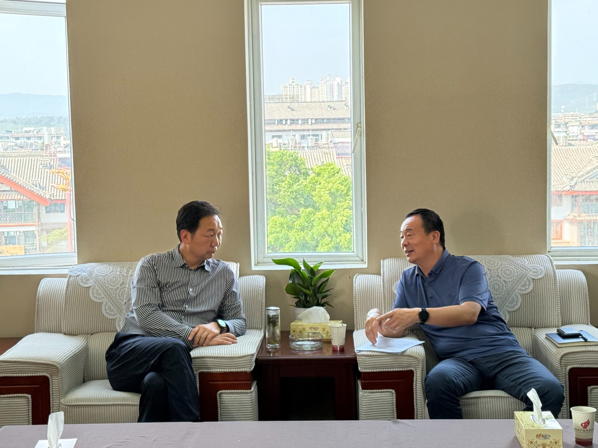 近日,公司黨委書記、董事長孫道光,黨委委員、財務(wù)總監(jiān)代映華率隊赴楚雄州,與楚雄州國有資本投資集團有限公司黨委書記、董事長郭家權(quán),楚雄市委常委、楚雄高新區(qū)黨工委副書記、管委會副主任柳思福以及楚雄州國有資本運營集團有限公司黨委委員、副總經(jīng)理經(jīng)杰進行交流座談。