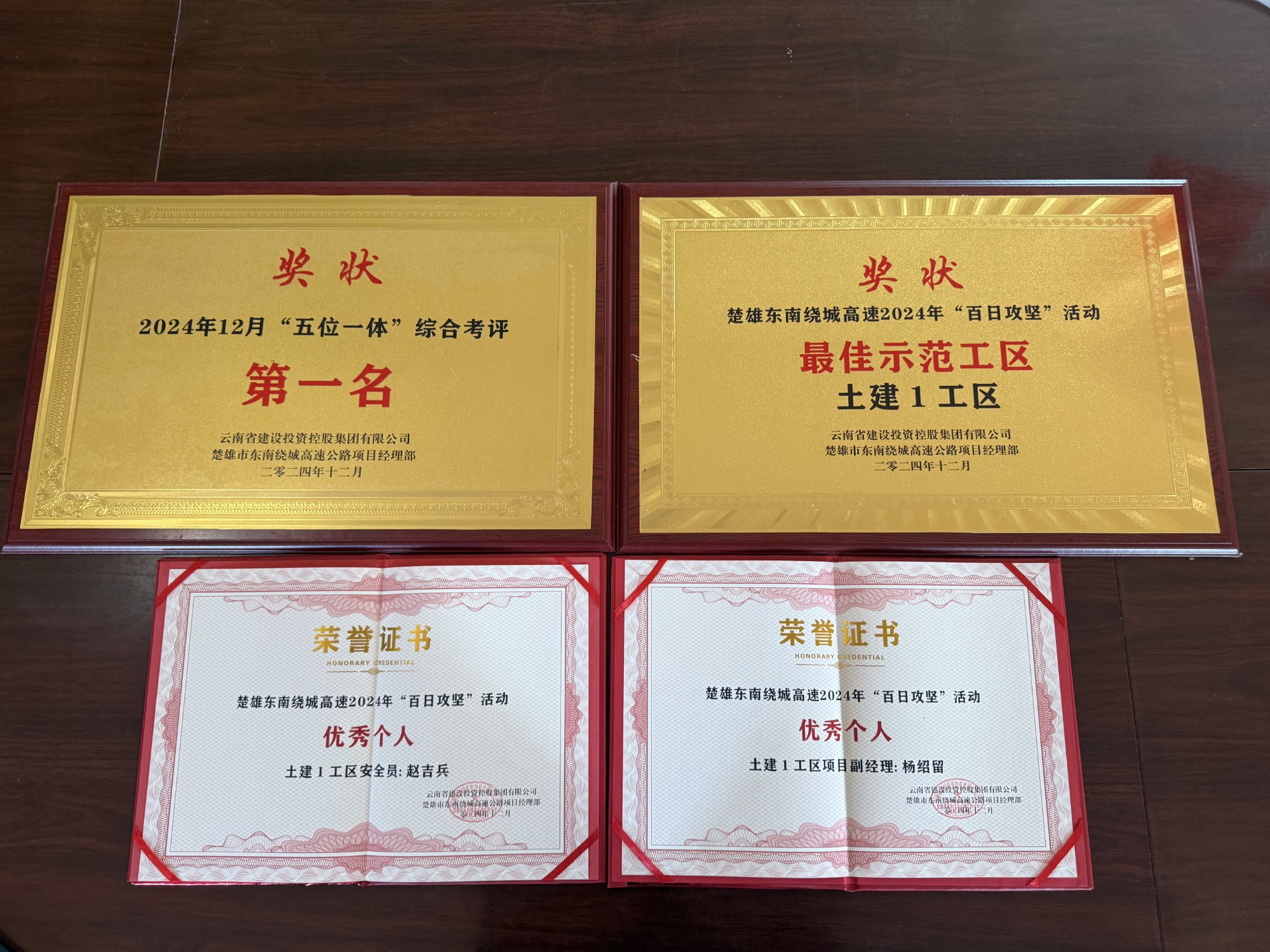 近日,路橋分公司承建的楚雄市東南繞城高速土建1工區(qū)憑借高效的管理和專業(yè)的團(tuán)隊(duì)與過硬的技術(shù),在總承包項(xiàng)目經(jīng)理部組織召開的2024年12月“五位一體”考核評(píng)比中以84.97分的優(yōu)異成績(jī)榮獲全線第一名。同時(shí),項(xiàng)目也榮獲2024年“百日攻堅(jiān)”活動(dòng)最佳示范工區(qū)以及優(yōu)秀項(xiàng)目經(jīng)理、優(yōu)秀個(gè)人等多項(xiàng)榮譽(yù)。