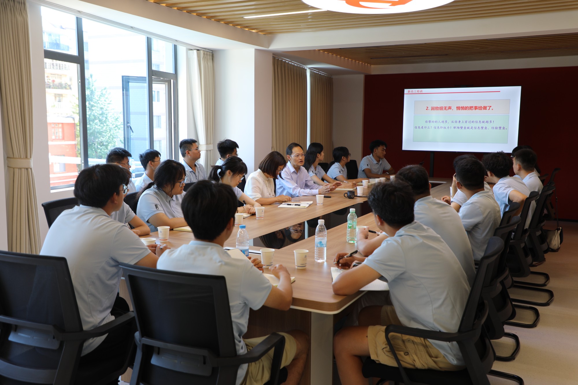 公司董事會秘書、戰(zhàn)略發(fā)展部經(jīng)理趙高仲對新員工進(jìn)行了入職培訓(xùn),圍繞轉(zhuǎn)變和融入、職業(yè)規(guī)劃、學(xué)習(xí)、認(rèn)知、行動五個方面對新員工進(jìn)行指導(dǎo),并結(jié)合工作實際提出了“接受工作五步法”“匯報工作三提問”,旨在幫助新員工快速適應(yīng)工作節(jié)奏。