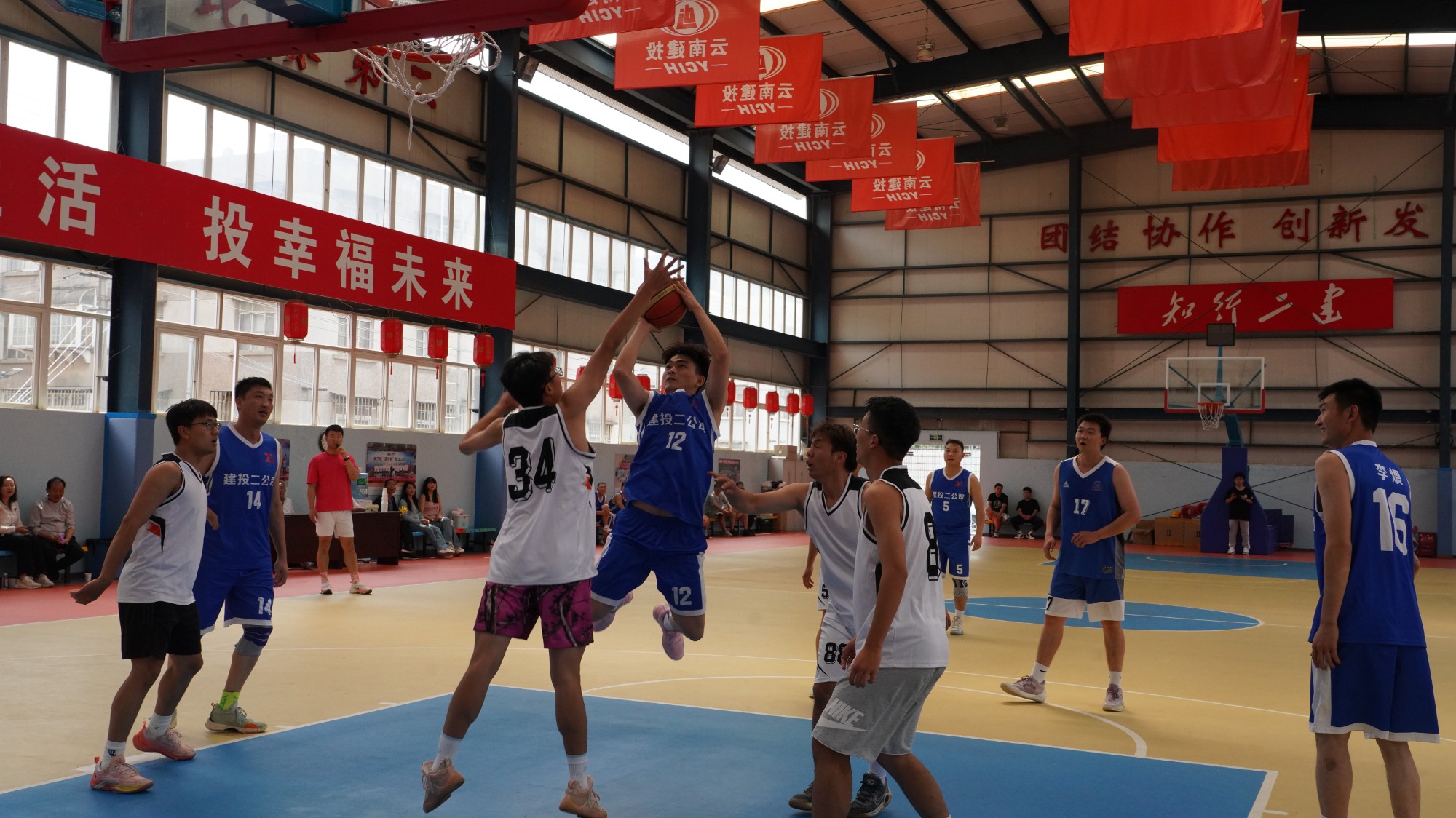 5月12日下午,公司與云南農(nóng)業(yè)大學(xué)建筑工程學(xué)院在公司籃球館開展籃球友誼賽。云南農(nóng)業(yè)大學(xué)建筑工程學(xué)院黨委書記王國賢、黨委副書記陸志炳,公司黨委書記、副董事長董學(xué)友,黨委委員、董事、副總經(jīng)理(主持工作)臧慶澤,黨委委員、工會主席、副總經(jīng)理李斌出席活動。