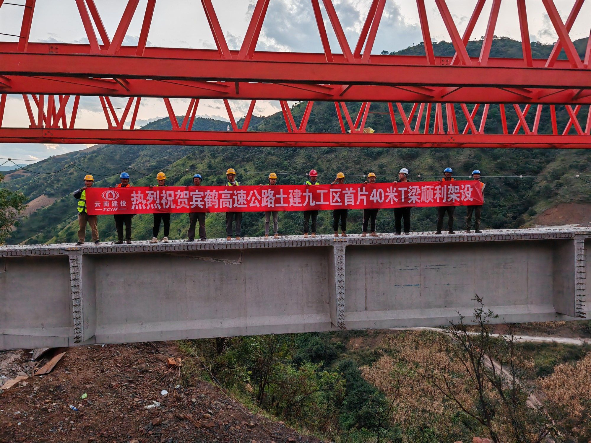 10月21日下午,隨著鐵中坡一號(hào)大橋1-3號(hào)40米T梁緩緩降落,由路橋分公司承建的賓鶴高速土建九工區(qū)鐵中坡大橋首片T梁順利架設(shè),標(biāo)志著2023年施工任務(wù)取得階段性進(jìn)展,為早日實(shí)現(xiàn)全線通車(chē)奠定了堅(jiān)實(shí)的基礎(chǔ)。