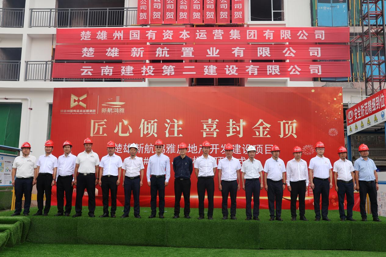 8月22日,由第十直管部承建的楚雄新航鴻雅房地產(chǎn)開發(fā)建設(shè)項(xiàng)目3#、5#、6#樓首棟順利封頂。楚雄州住建局、州國資委、楚雄市政府相關(guān)領(lǐng)導(dǎo),楚雄州國有資本運(yùn)營集團(tuán)有限公司領(lǐng)導(dǎo)班子成員,新航置業(yè)公司負(fù)責(zé)人,公司黨委副書記、董事長陳定華,黨委書記、副董事長董學(xué)友出席封頂儀式。