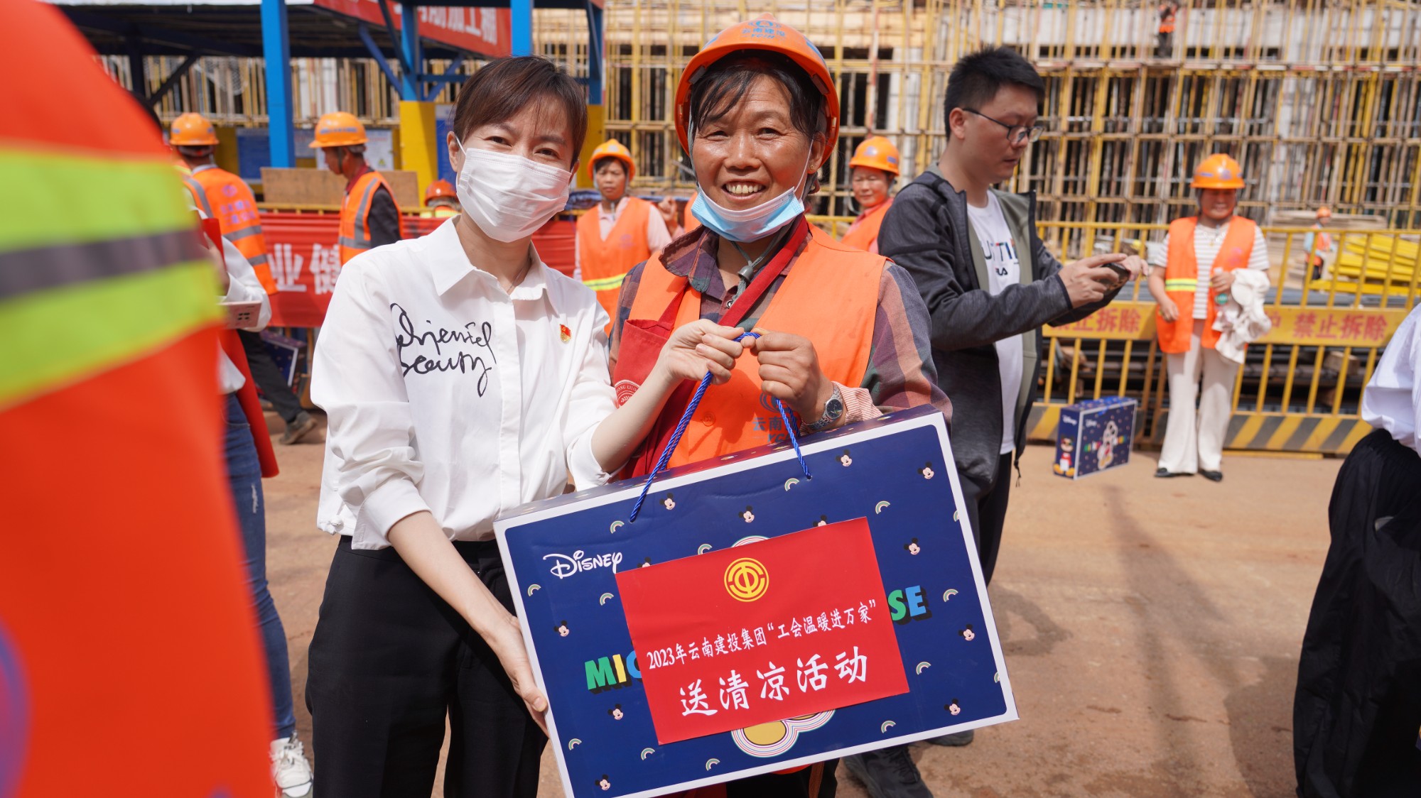 最后,慰問組為項目管理人員和產(chǎn)業(yè)工人們送上了集團工會為大家精心準(zhǔn)備的“夏送清涼”慰問品。