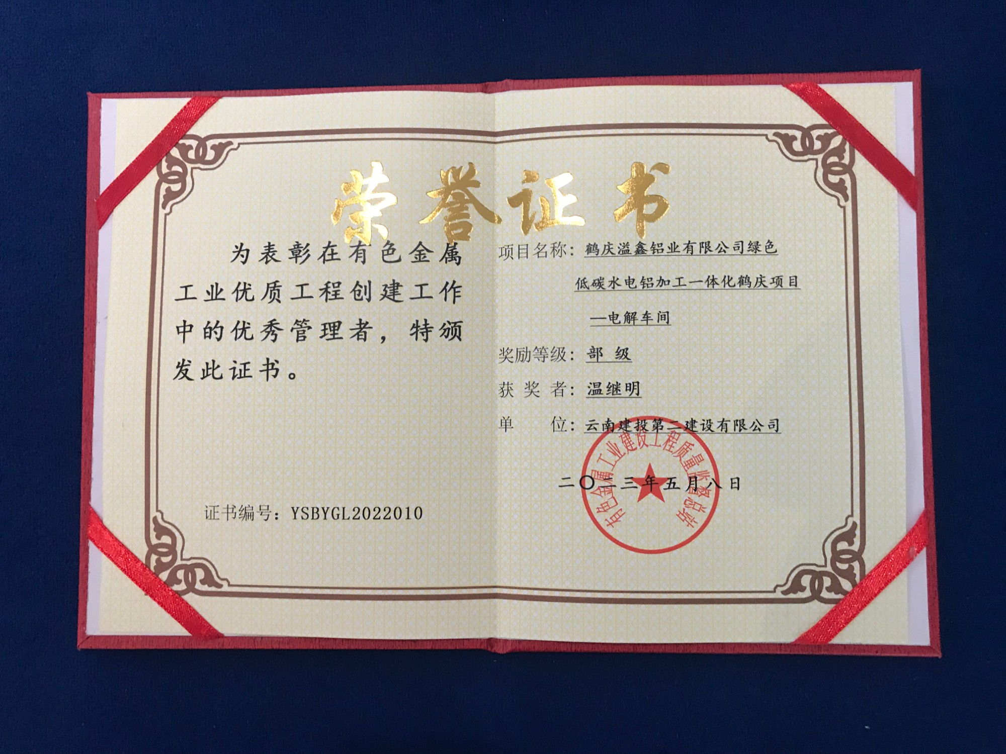 6月20日,2023年度有色金屬工業(yè)建設(shè)工程質(zhì)量監(jiān)督工作會(huì)在鄭州召開(kāi),會(huì)議表彰了2022-2023年度第一批有色金屬工業(yè)優(yōu)質(zhì)工程。由公司第四直管部承建的鶴慶溢鑫鋁業(yè)有限公司綠色低碳水電鋁加工一體化鶴慶項(xiàng)-電解車間獲得2022-2023年度有色金屬優(yōu)質(zhì)工程獎(jiǎng),項(xiàng)目技術(shù)負(fù)責(zé)人溫繼明榮獲“優(yōu)秀管理者”。