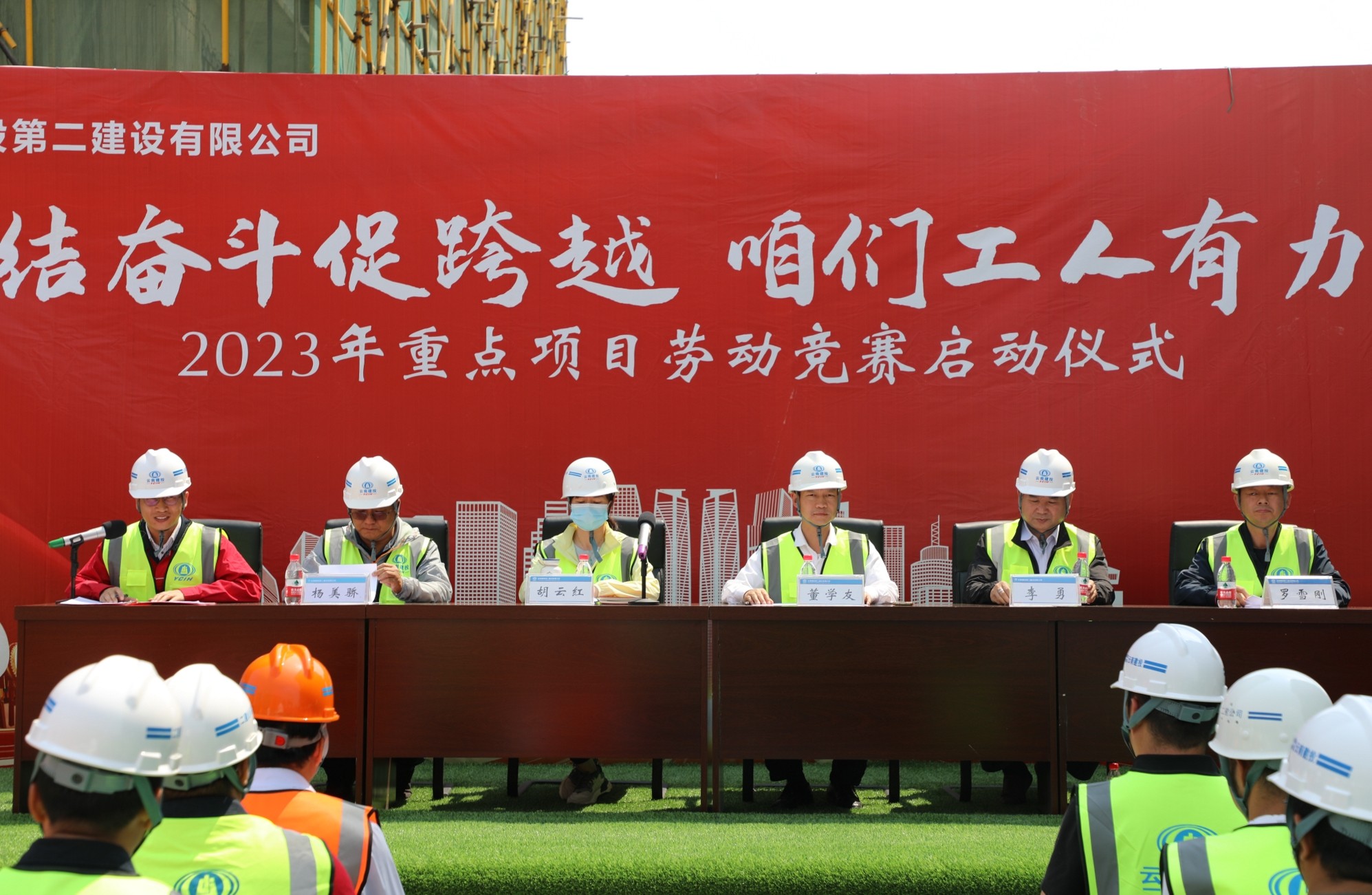 4月17日下午,公司工會(huì)在第十直管部楚雄新航鴻雅建設(shè)項(xiàng)目舉行2023年“團(tuán)結(jié)奮斗促跨越 咱們工人有力量”勞動(dòng)競賽啟動(dòng)儀式暨2022年度勞動(dòng)競賽先進(jìn)表彰。公司黨委副書記、副董事長、總經(jīng)理董學(xué)友,黨委委員、工會(huì)主席胡云紅,總經(jīng)理助理、第十五直管部經(jīng)理李勇,安全總監(jiān)羅雪剛出席活動(dòng),公司生產(chǎn)管理部、工會(huì)辦公室成員,各基層單位工會(huì)負(fù)責(zé)人以及在建項(xiàng)目參賽代表參加啟動(dòng)儀式。