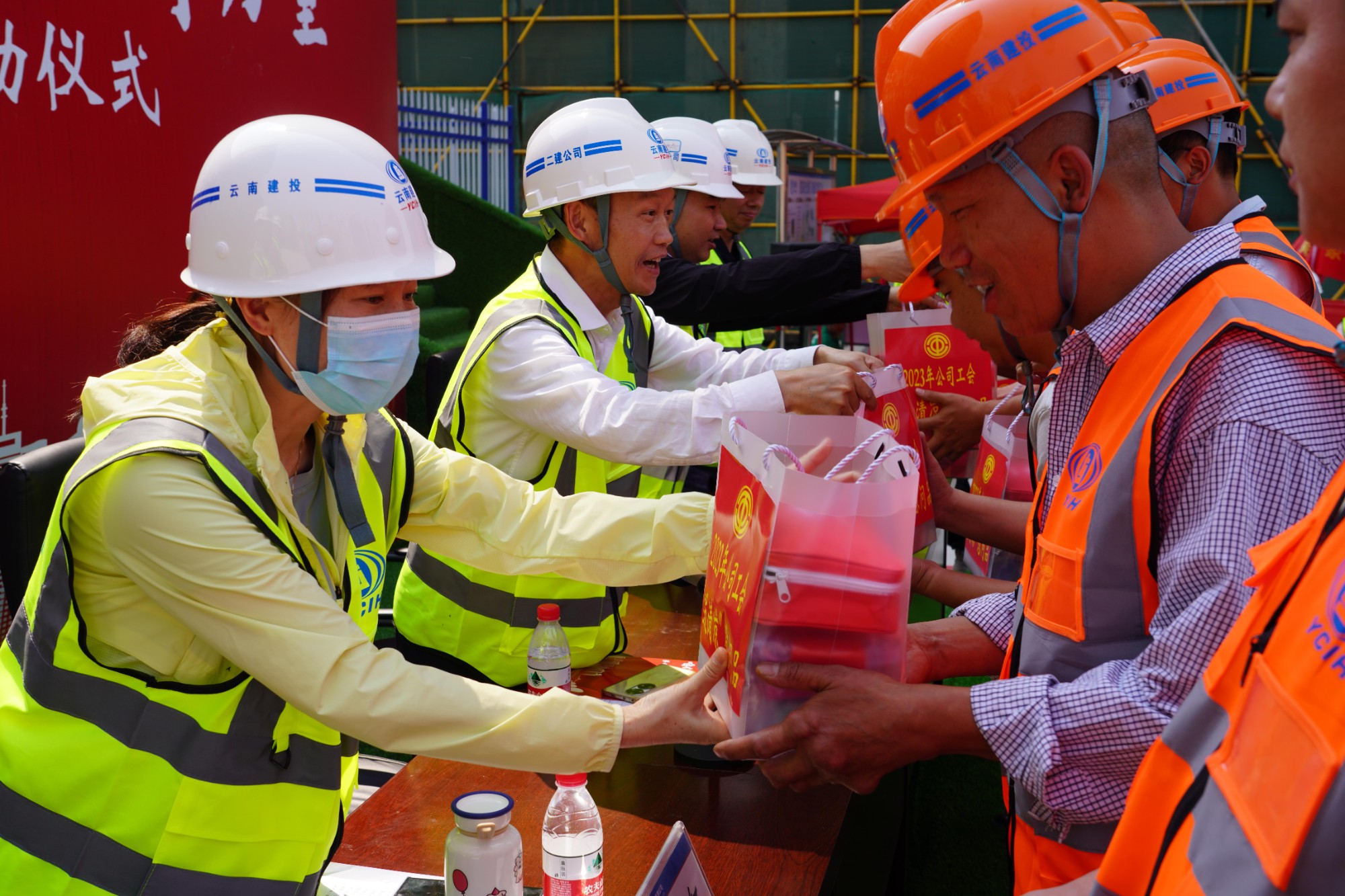 儀式上組織了勞模宣講活動(dòng),公司勞模黃天柱按照全國總會(huì)、云南省總工會(huì)相關(guān)要求,代表廣大產(chǎn)業(yè)工人,結(jié)合自身工作經(jīng)歷,講述了產(chǎn)業(yè)工人奮斗故事,弘揚(yáng)了勞模精神、勞動(dòng)精神、工匠精神。參會(huì)領(lǐng)導(dǎo)為勞動(dòng)競賽參賽單位以及青年突擊隊(duì)代表授旗,勞動(dòng)競賽參賽項(xiàng)目代表、獲獎(jiǎng)代表分別作了表態(tài)發(fā)言,同時(shí)啟動(dòng)公司2023年“夏送清涼”慰問活動(dòng),為項(xiàng)目部及產(chǎn)業(yè)工人代表送上了慰問品。