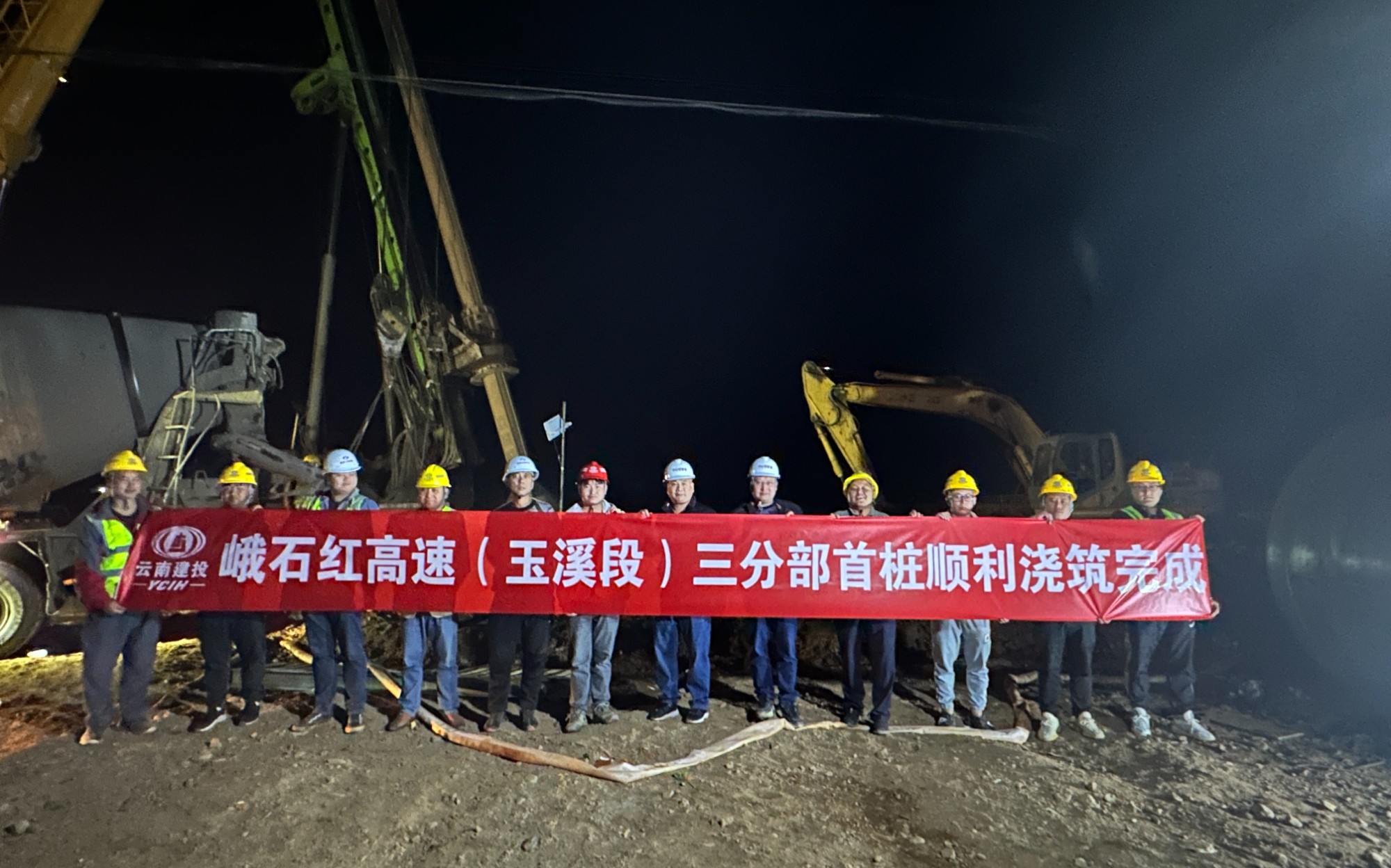 3月21日凌晨12時30分,第十九直管部承建的峨山至石屏至紅河高速公路(玉溪段)三分部項目順利完成首顆樁基澆筑。