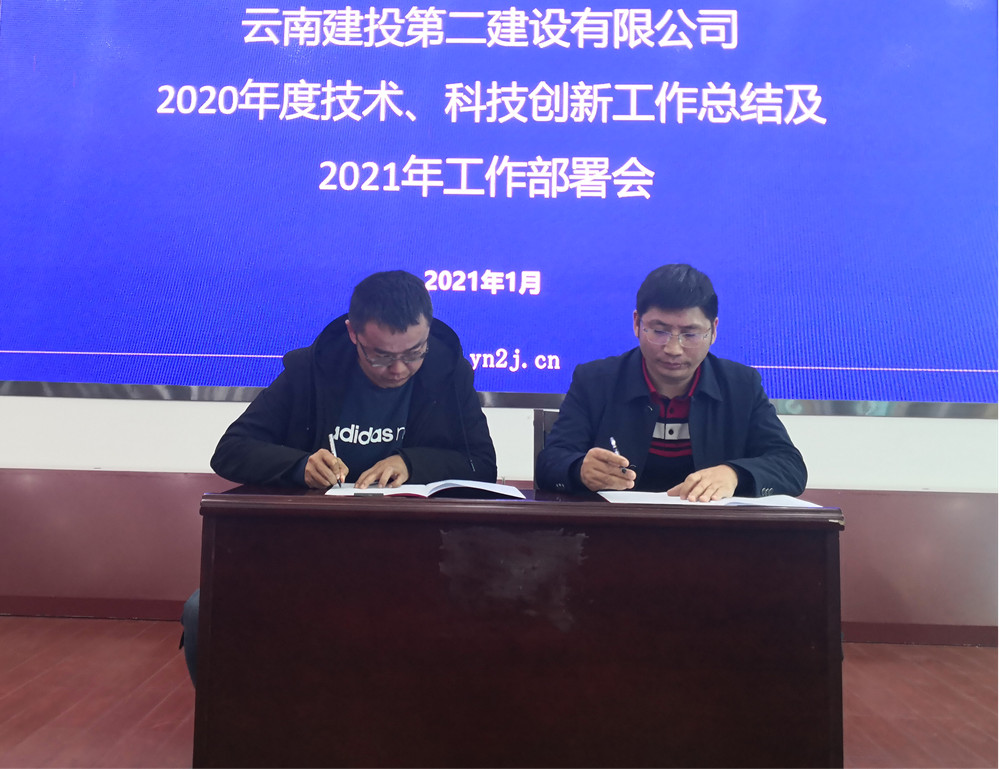 會上,公司領導為獲得2020年度技術管理工作突出的基層單位、優(yōu)秀主任工程師代表、優(yōu)秀技術負責人代表進行頒獎。付雋蒼代表公司與基層單位代表簽訂《2021年工程技術、創(chuàng)優(yōu)和科技創(chuàng)新管理責任狀》。獲獎單位人員依次上臺就技術及科技管理內(nèi)容進行發(fā)言交流,并提出技術管理工作進行合理化建議。