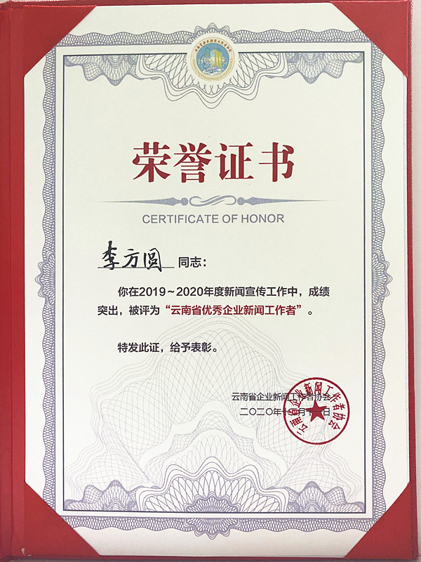 在12月9日至11日舉辦的云南省企業(yè)新聞工作者協(xié)會2020年會暨紅塔文化講壇中,公司宣傳工作再次得到了高度贊揚與肯定。其中,公司報刊《知行二建》榮獲2019—2020 年度“云南省優(yōu)秀企業(yè)報”榮譽(yù)稱號,微信公眾號“知行二建”榮獲2019—2020 年度“云南省優(yōu)秀企業(yè)新媒體”榮譽(yù)稱號,黨委工作部李方圓榮獲2019—2020 年度“云南省優(yōu)秀企業(yè)新聞工作者”榮譽(yù)稱號。