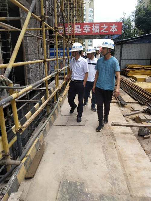 陳定華一行深入施工現(xiàn)場(chǎng)了解項(xiàng)目最新進(jìn)展情況,先后查看了項(xiàng)目酒店公寓樓辦公樓主體、外架、二次結(jié)構(gòu)等施工情況,詳細(xì)聽取了項(xiàng)目部關(guān)于施工電梯、塔吊等大型機(jī)械設(shè)備安全檢查情況以及項(xiàng)目進(jìn)度、質(zhì)量、成本控制、安全管理等方面情況的匯報(bào)。