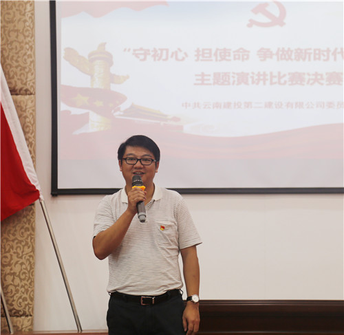 公司黨委“守初心 擔(dān)使命 爭(zhēng)做新時(shí)代奮斗者”演講比賽初賽于8月14日下午開始,來自各基層單位26名員工參加比賽,為保證比賽公平公正,本次演講比賽邀請(qǐng)?jiān)颇鲜⊙葜v學(xué)會(huì)副會(huì)長(zhǎng)馬克強(qiáng)教授作為專業(yè)評(píng)委。經(jīng)過激烈角逐,共有10名選手脫穎而出,亮相決賽舞臺(tái)。8月21日下午,決賽正式開始,公司特邀云南省演講學(xué)會(huì)會(huì)長(zhǎng)李暾教授作為專業(yè)評(píng)委,公司黨委書記、副董事長(zhǎng)萬向遵,公司黨委委員、紀(jì)委書記黃開柱,公司黨委委員、工會(huì)主席胡云紅,公司總經(jīng)理助理趙高仲出席比賽并擔(dān)任評(píng)委。