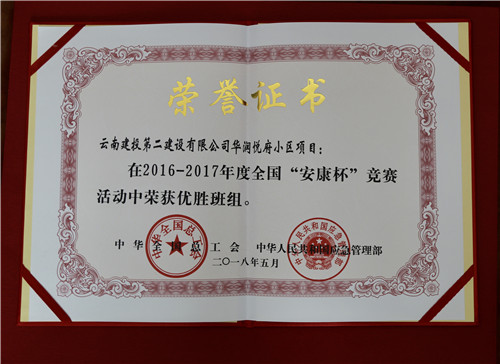 公司華潤悅府小區(qū)項(xiàng)目喜獲全國“安康杯”競賽優(yōu)勝班組榮譽(yù)稱號(hào)