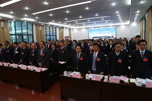 上午9時(shí),會(huì)議開始。全場(chǎng)參會(huì)人員起立,高唱《國(guó)歌》。本次職代會(huì)共有141名代表,請(qǐng)假10人,實(shí)到131人。大會(huì)邀請(qǐng)離退休老領(lǐng)導(dǎo)7人、青年干部31人列席會(huì)議。