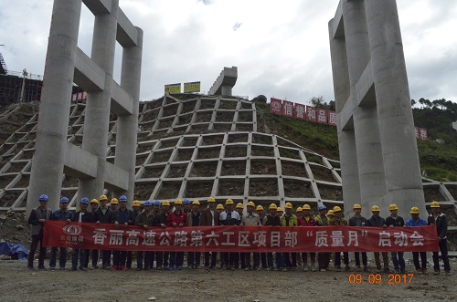 9月9日上午,香麗高速六標(biāo)段2017年“質(zhì)量月”活動啟動會在二工區(qū)沖江河互通立交施工現(xiàn)場如期舉行。各科室代表、工區(qū)管理人員、工人代表等參加啟動會。
