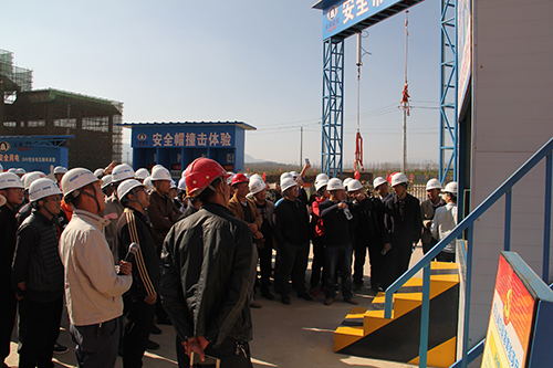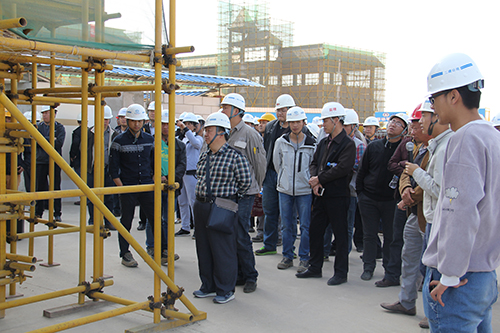 在項(xiàng)目部管理人員的帶領(lǐng)下下,觀摩團(tuán)先后參觀了樣板展示區(qū)、質(zhì)量安全體驗(yàn)區(qū)、現(xiàn)場(chǎng)施工工藝等。在質(zhì)量安全體驗(yàn)區(qū),觀摩團(tuán)先后參觀了防穿刺體驗(yàn)、工友之約、移動(dòng)平臺(tái)、傾倒平臺(tái)、觸電體驗(yàn)、洞口墜落體驗(yàn)等各體驗(yàn)項(xiàng)目,項(xiàng)目部管理人員一一為大家作了講解和演示。在樣板展示區(qū),觀摩團(tuán)先后參觀了外架搭建、墻體砌磚、混凝土澆筑、墻體抹灰等各工序的質(zhì)量、技術(shù)標(biāo)準(zhǔn),大家不時(shí)的拿出手機(jī)拍照,仔細(xì)觀察各施工環(huán)節(jié)的質(zhì)量技術(shù)標(biāo)準(zhǔn)及細(xì)節(jié),紛紛表示贊許。