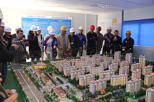 在進(jìn)入施工現(xiàn)場(chǎng)參觀前,項(xiàng)目部管理人員對(duì)觀摩團(tuán)人員做了安全交底,介紹進(jìn)入施工現(xiàn)場(chǎng)過程中應(yīng)注意的具體事項(xiàng)。參觀各棟號(hào)施工現(xiàn)場(chǎng)中,安全通道里的各種安全宣傳標(biāo)語和圖解內(nèi)容依次向觀摩團(tuán)展示了施工現(xiàn)場(chǎng)應(yīng)注意的安全事項(xiàng)和安全操作規(guī)范,樓層內(nèi)部各結(jié)構(gòu)和施工環(huán)節(jié)的工藝展示不時(shí)得到了觀摩人員的稱贊,各棟號(hào)管理公示牌向觀摩團(tuán)詳細(xì)介紹了樓層的面積、結(jié)構(gòu)、工作內(nèi)容計(jì)劃以及具體負(fù)責(zé)人信心等內(nèi)容,工具化的鋼筋加工棚、工具房、安全防護(hù)棚等依次向觀摩團(tuán)展示了定型化設(shè)備的優(yōu)勢(shì)。在項(xiàng)目總承包部,觀摩團(tuán)來到沙盤展示區(qū),對(duì)宜良棚改項(xiàng)目的設(shè)計(jì)、整體形象以及各區(qū)域的功能布局進(jìn)行了參觀。